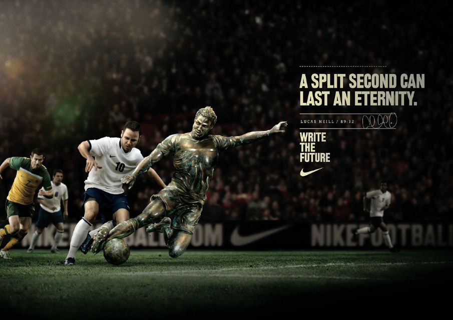 Il messaggio racchiuso nel titolo è chiarissimo: scrivi il tuo futuro. Che tu sia su un campo da calcio davanti a migliaia di spettatori o nel campo di provincia a lottare nel fango stai scrivendo la tua storia. Le tue azioni sono le stesse dei grandi campioni, cambia il contesto, ciò che unisce il tutto sono i prodotti Nike.