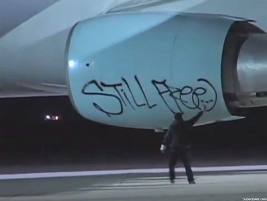 Il risultato è un filmato di un paio di minuti con protagonista un graffitaro che salta la recinzione della Base dell’Aeronautica di Andrews e scrive: “still free”, con la sua bomboletta, sul 747 del presidente. Il video ha indirizzato gli spettatori al sito web stillfree.com spingendo blogger e stampa a tempestare di telefonate e email l’ufficio stampa della casa bianca.
