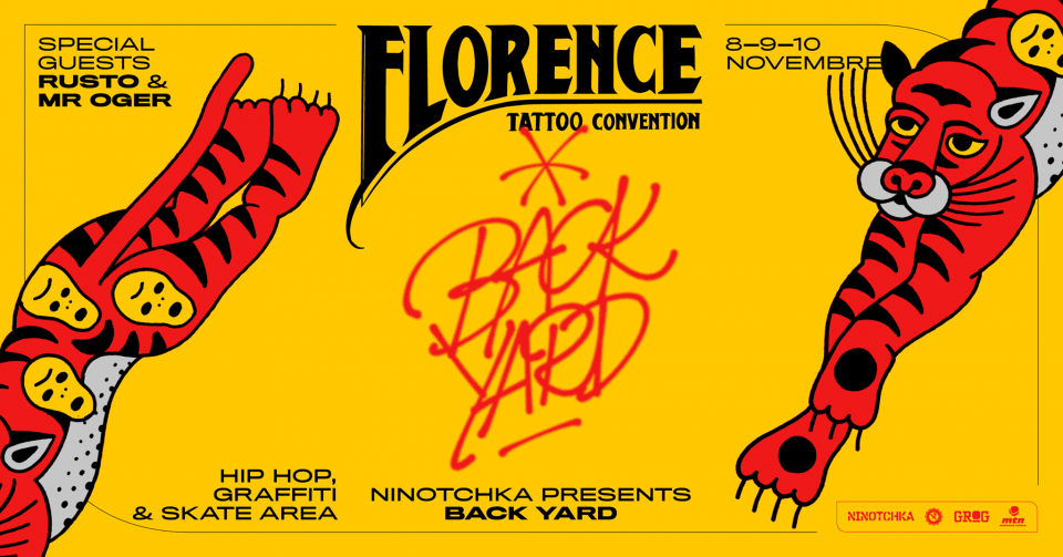Per la sua 12° edizione, Florence Tattoo Convention insieme a Ninotchka & Switch Shop propone Back Yard, una nuova zona interamente dedicata a Graffiti, Skate, Hip Hop e Djing.