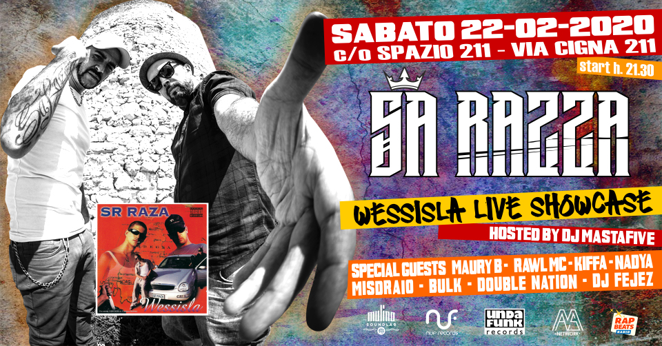 I Sa Razza sono uno dei pochi gruppi che ha percorso sin dall’inizio l’intera storia del rap in Italia. Saranno ospiti dello Spazio 211 a Torino con un evento live di oltre un’ora. Inedito e forse irripetibile, uno showcase che porterà le lancette indietro nel tempo, che ripercorrerà in gran parte l’album “Wessisla”. Senza dimenticare altri brani dal vasto repertorio dei due MC’s che saranno accompagnati dal ben conosciuto Dj Mastafive al mixer.