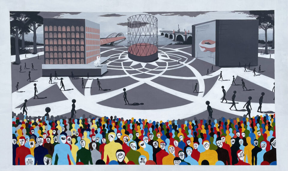 La storia dei flussi migratori, la fatica e la difficoltà del viaggio, la speranza del “mondo nuovo” e le sfide dell’integrazione sono l’argilla in cui si modella il progetto culturale del M.A.U.Mi, un luogo culturale e comunitario unico nel suo genere: un museo open air che nelle sue otto opere (a cura di David “Diavù” Vecchiato, Simone Tso, Nicola Verlato, Ale SensoCroma, Daniele Tozzi, Gio Pistone, Mr. Klevra) mette insieme i dinosauri e Sant’Elena, la rilettura di un moderno Costantino e la nascita di una Roma che già dalla sua fondazione è sempre stata meticcia, multiculturale, declinata al plurale.