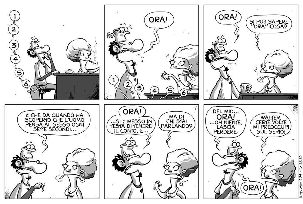 Si dice che l’uomo ci pensi in media ogni sette secondi; cioè nel tempo necessario per leggere questa striscia i maschietti ci hanno pensato almeno 3 o 4 volte… dipende dalla velocità di lettura.