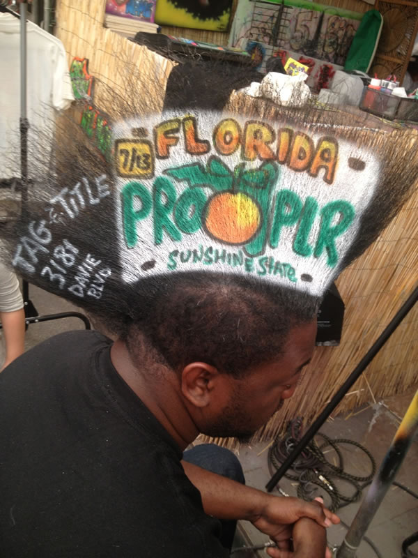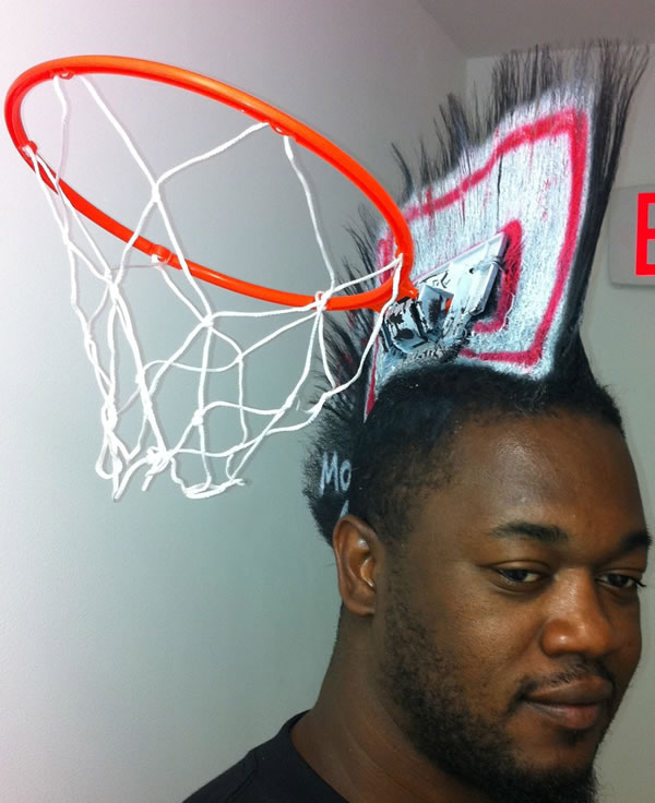 La vita passa per i capelli. Chiedetelo a questo ragazzo di 33 anni, da Pompano Beach. Si chiama Gasmy Joseph (AKA Mohawk Gaz) e si è inventato una ricetta incredibile per fare pubblicità a ciò che più lo colpisce. L’epifania è arrivata lo scorso anno quando ha scelto di “mettere al servizio” i suoi capelli per sponsorizzare il compleanno di un amico. Da quel giorno, l’idea è diventata business. Chiunque intenda spargere voce a proposito di un evento o di un brand, passa per la testa di Joseph: l’artista si è rasato e colorato il capo per dare visibilità alla comedy notturna della Florida Atlantic University, scrivendo “Hit Em in the Mouth Thursdays”. Ha dipinto inoltre un “For Rent $500.” Deliver Lean, un’impresa di catering di cibo naturale, lo ha mandato ai Florida Panthers e Miami Heat games con il suo marchio scolpito sul cranio. E il marketing è schizzato alle stelle. Ci sono passate anche opere e dipinti su quei capelli, fino alla maturazione post-umana più ludica, in occasione dell’NBA: un cesto da pallacanestro con tanto di cerchio metallico da cui scende una reticella di forma troncoconica e tabellone.