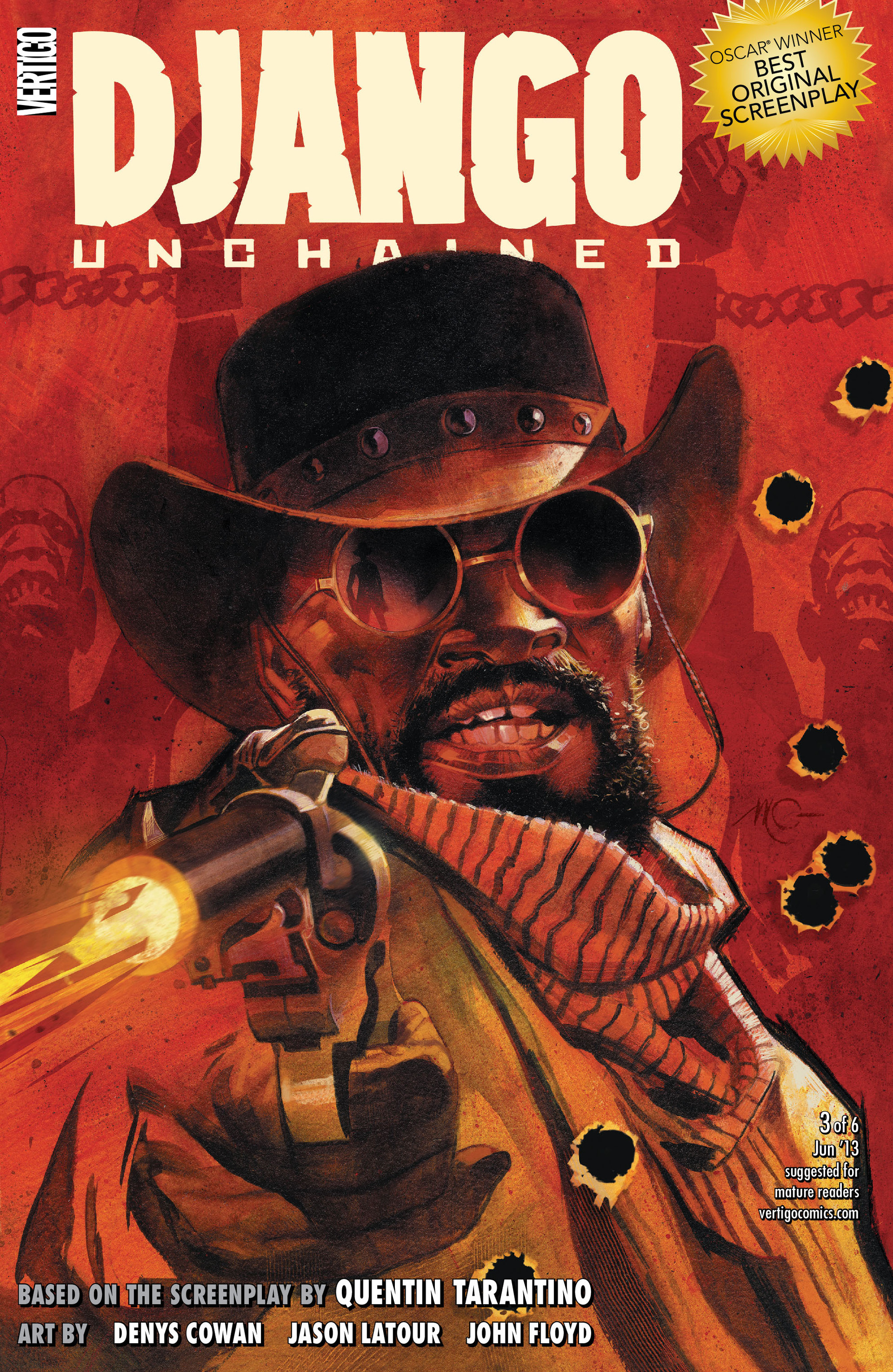 Per dare un po’ di crediti i disegni sono affidati al serbo Rajko Milosevic o -come preferisce essere chiamato – R. M. Guera: un disegnatore che ha lavorato a lungo in Yugoslavia (fra l’altro anche in serie western degli anni ’80 come Texas Riders), che risiede attualmente a Barcellona e che è noto per aver già collaborato con la Vertigo su Scalped. Nel secondo numero la sceneggiatura è affidata al grande autore afro-americano Reginald Hudlin, noto per il suo fantastico ciclo di Black Panther e che del film Django Unchained è stato uno dei produttori. Il terzo numero, uscito negli Stati Uniti il 10 aprile, è sceneggiato ancora da Hudlin ma con i disegni questa volta affidati a Denys Cowan: un disegnatore che è stato fra i fondatori della filiale “afroamericana” Milestone della DC e produttore della serie animata Static Shock.