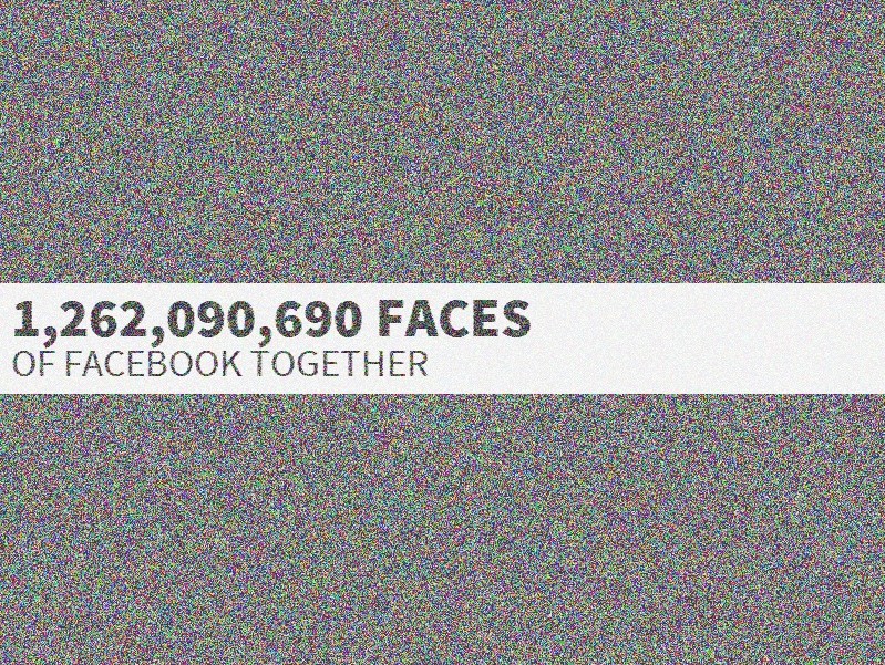 ottobre2013Il mondo di Facebook è un mondo che immensamente mi affascina ed immensamente mi terrorizza. Non per nulla ho scritto la mia tesi su di esso, ma questa è un’altra storia. La storia di oggi riguardo Facebook è un pazzesco, strano, divertente ed inquietante programma chiamato THE FACES OF FACEBOOK progettato da Natalia Rojas dove si possono vedere tutti i profili degli utenti Facebook, e parliamo di 1,271,548,000 (a salire) volti su un unico colorato, immenso, frame… che si può zoomare.