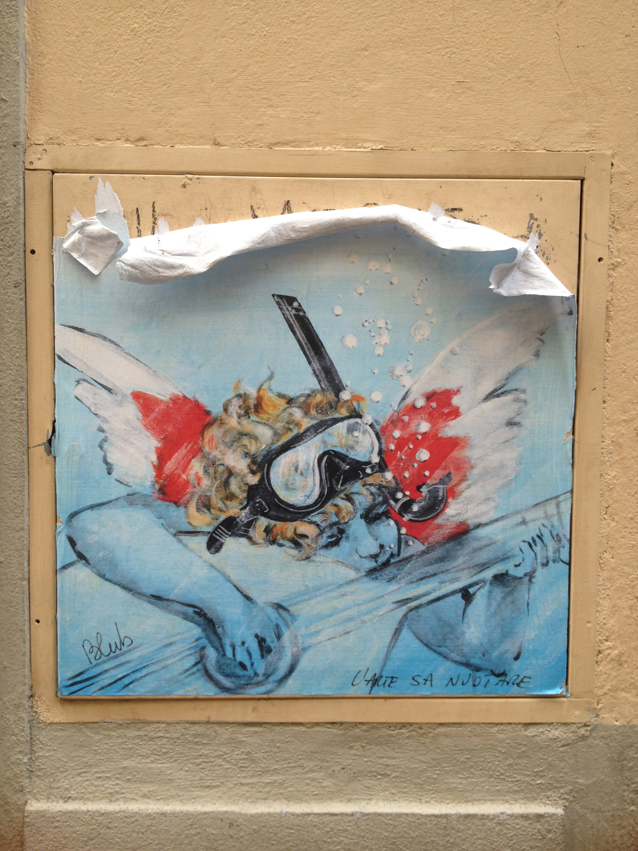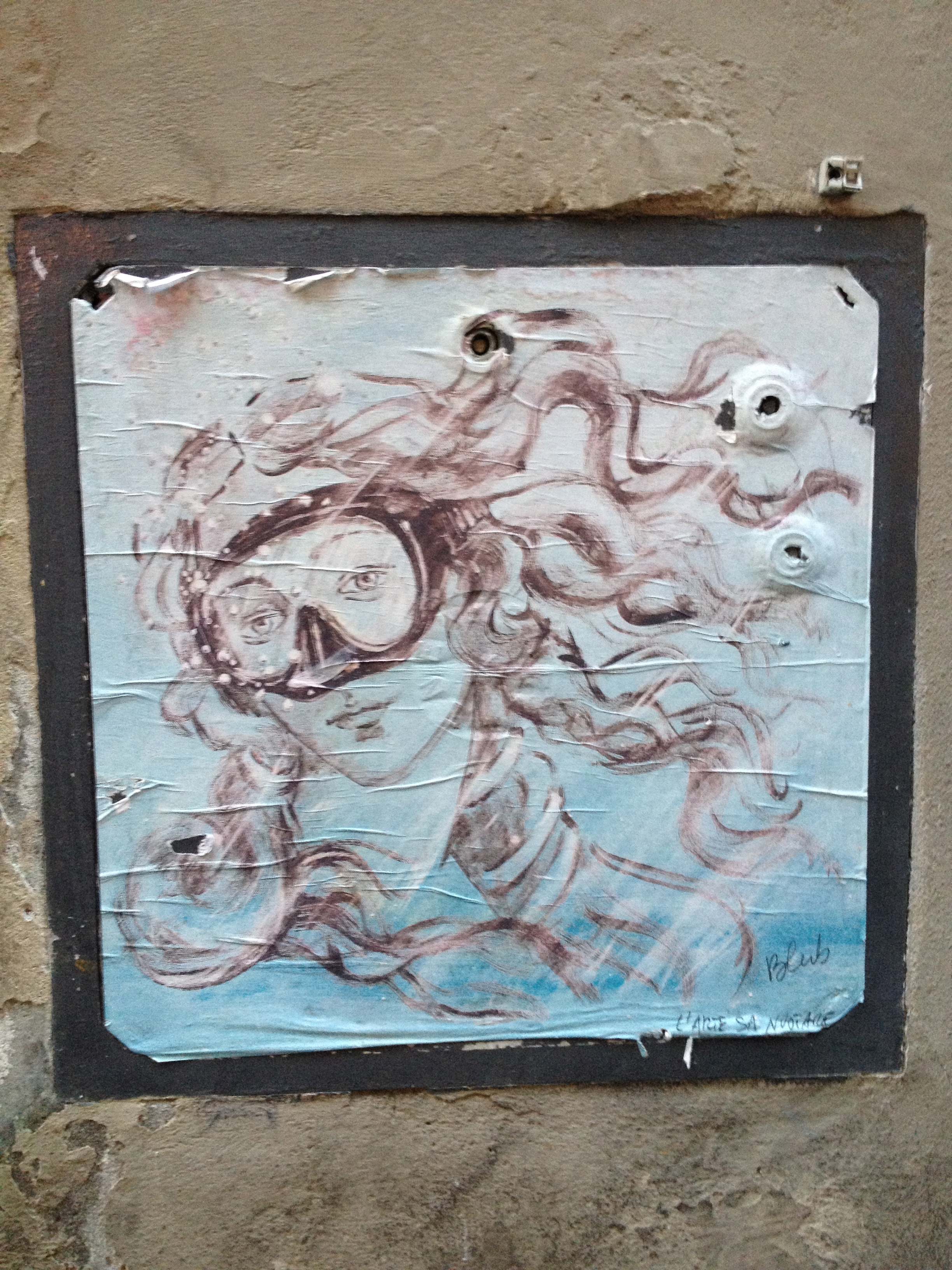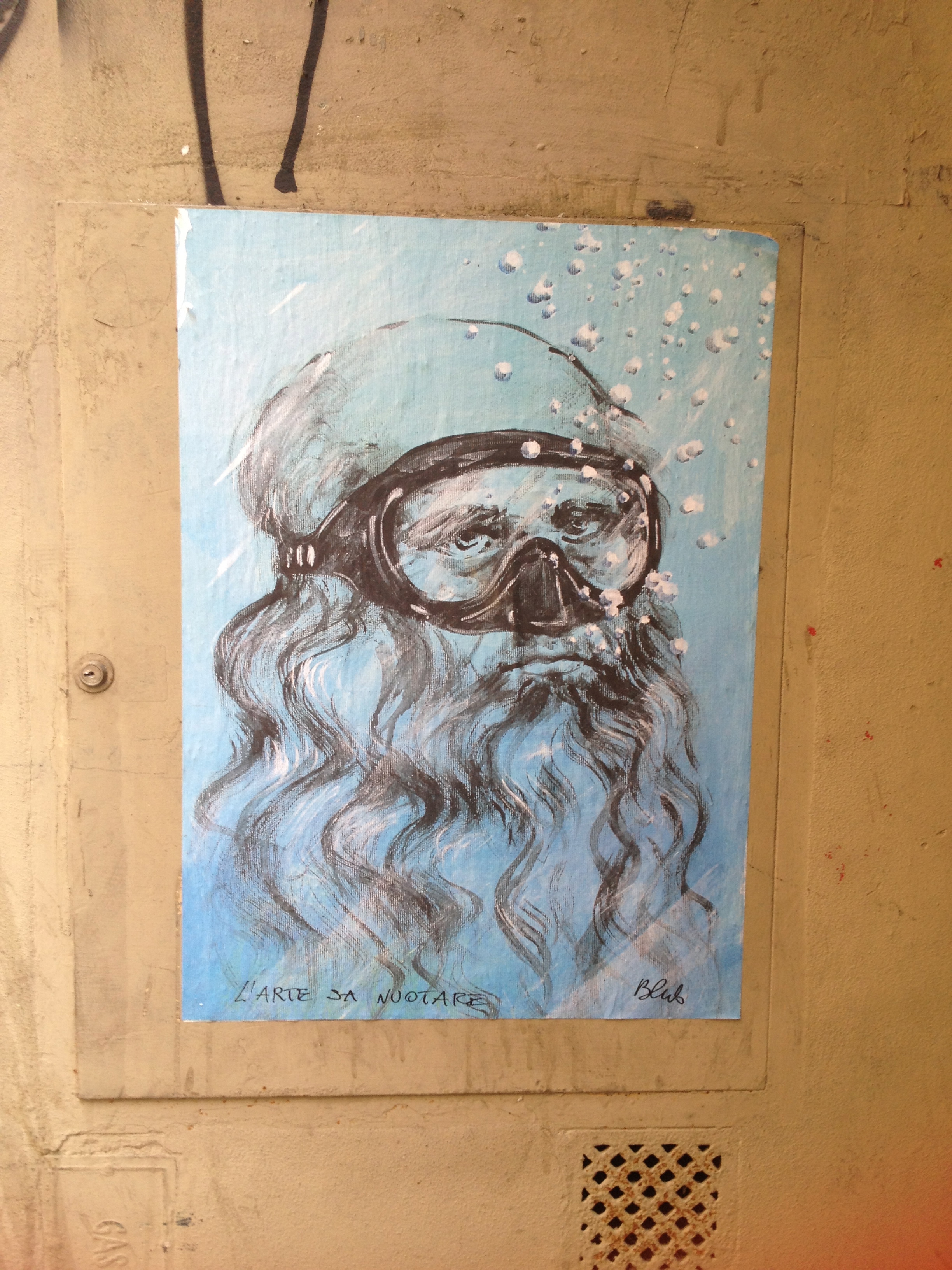 IMG_2695_2 2I fiorentini ormai lo conoscono bene: parliamo di Blub, lo street artist che ha tappezzato le mura di Firenze (ma pare che abbia iniziato il suo lavoro in Spagna circa un anno fa) con alcune delle icone più importanti del nostro panorama artistico, a cui Blub ha messo la maschera ed il boccaglio, a simbolizzare quello che è il suo slogan principale: “L’arte sa nuotare”, ossia non annega nella crisi attuale. Visto che vuole mantenere la sua identità segreta, lo abbiamo raggiunto virtualmente con questa intervista.