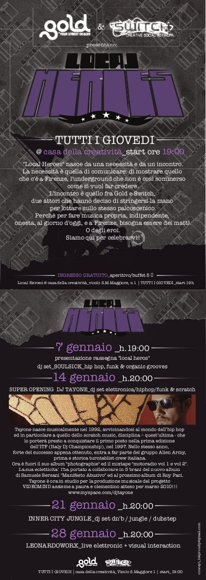 Switch e Gold si stringono la mano per presentare assieme il progetto Local Heroes, una piattaforma di (auto)promozione della realtà underground.