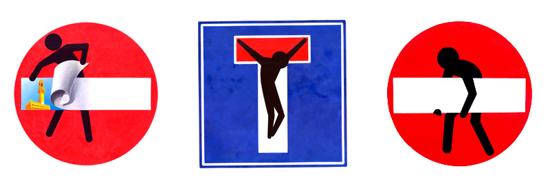 Noi siamo invasi dai cartelli stradali, fino all’ossessione, e mi sembra quasi un dovere come artista farlo notare e fornire la mia proposta rendendoli allegri, simpatici, interessanti ma anche profondi come quello de la Pietà.