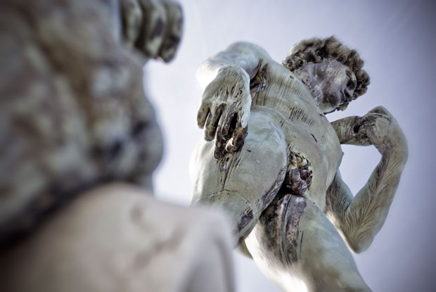 La forza esplosiva della sassata, l’azione, il dinamismo e la drammaticità verranno dopo. nella statua sono “solo” sottointesi…