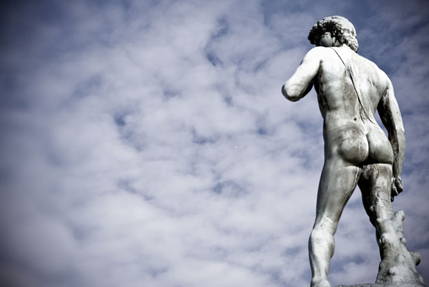 Michelangelo (e in questo la situazione politica di Firenze gioca un ruolo chiave) innanzitutto decide di rappresentare David non come un adolescente, ma come un uomo (parecchio grosso tra l’altro).