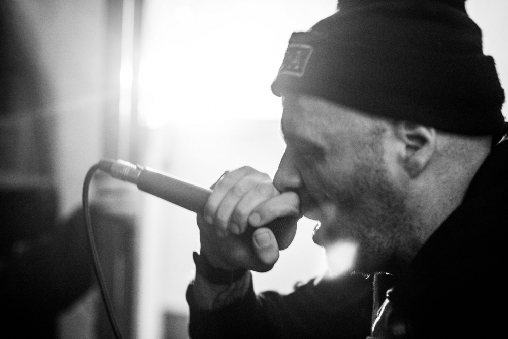 “Le prime due foto sono state scattate in auto, durante il viaggio. Ho usato l’effetto mosso per dare l’idea della dinamicità di ciò che stavamo compiendo. Ho optato per questo effetto anche nelle foto del live, è un linguaggio che sto sviluppando ultimamente perchè ritengo rappresenti in modo molto espressivo l’atmosfera respirata durante le esibizioni degli artisti. D’altronde, anche nelle chiacchierate con Luca (Blo/b) e Matteo (Gioielli) emerge spesso l’idea di sporcare le cose in modo volontario, dopo aver preso coscienza della loro natura. Ci piace farlo in questo modo, si può dire che il loro rap abbia influenzato sia direttamente che indirettamente il mio stile fotografico. Tramite i miei scatti, cerco di completare quello che loro esprimono col microfono, così da creare un’esperienza completa. Con loro due mi trovo benissimo e c’è una grande energia e sintonia, dovuta sicuramente anche dall’amicizia che abbiamo costruito. Ci sono tutti i presupposti per andare avanti. Restate sintonizzati perchè dall’ idea di questo reportage me ne è venuta un’altra ancora più grande: voglio ricostruire tramite le mie foto tutto questo periodo, che ha condotto all’uscite di tre album e non solo. Un sintesi di questa cosa davvero speciale”