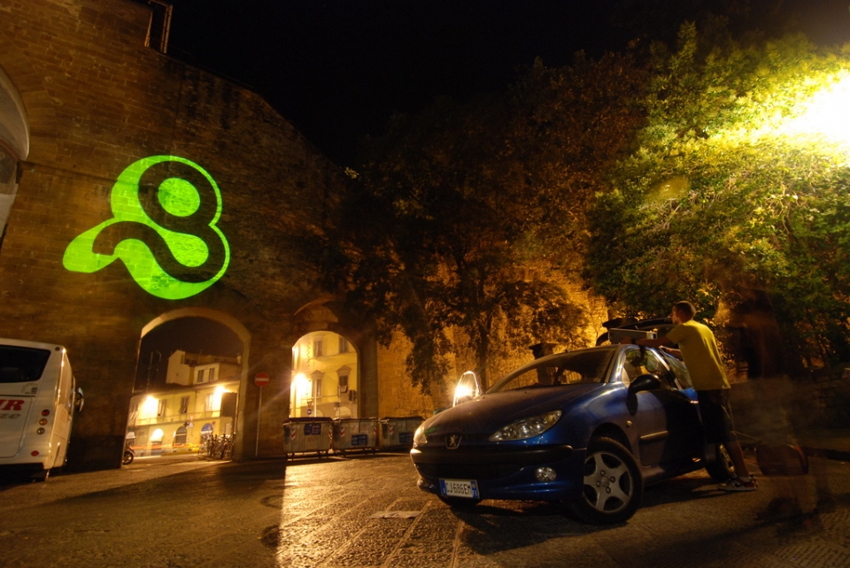 La curiosità dei passanti veniva destata da un logo scintillante che non avrebbe dovuto trovarsi nei luoghi dove veniva proiettato. E quel logo era così dannatamente familiare. Chiunque fosse di Firenze difficilmente poteva affermare di non averlo visto almeno una volta nella vita. Su un cartello stradale, in un locale, su una macchina o su un muro.