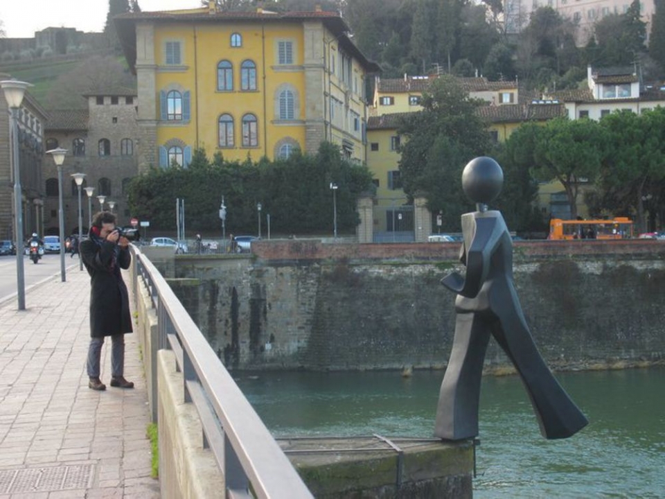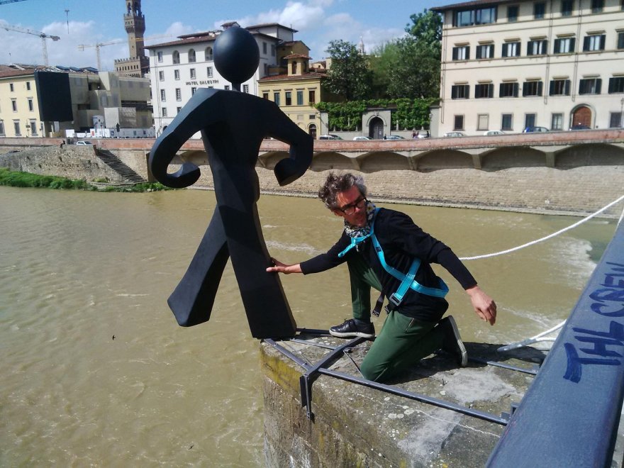 Una delle sue opere più celebri è senza dubbio quella posta su uno degli speroni di Ponte alle Grazie a Firenze: un uomo scuro stilizzato con un piede attaccato allo sperone e l’altro sospeso nel vuoto. Venne installata sul ponte lo stesso giorno in cui a Firenze fu esposto il ‘Teschio di Diamanti’ di Daniel Hirst: un’opera d’arte contemporanea del valore di 100 milioni di Euro.