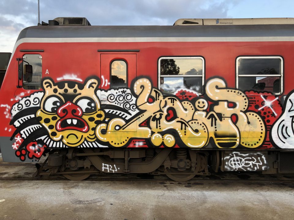 Quella notte feci il mio primo graffito. Mia madre a 13 anni mi lasciò andare in mezzo ai binari dicendomi di fare attenzione ed andai, con mio fratello più piccolo. E’ stato magico ed ho ancora quello spray. Feci un puppet, il giorno successivo con i fondini feci delle lettere ma la prima cosa che mi venne da disegnare era un puppet. Nei graffiti guardo sempre quello; sono innamorato delle robe di New York e per me un writer per essere completo deve saper fare anche il figurativo.Tutt’ora dipingo con vernice da ferramente o negozio dei cinesi, forse la scena di Trieste mi ha costretto ad adattarmi. Sono un tipo che si ingegna.”