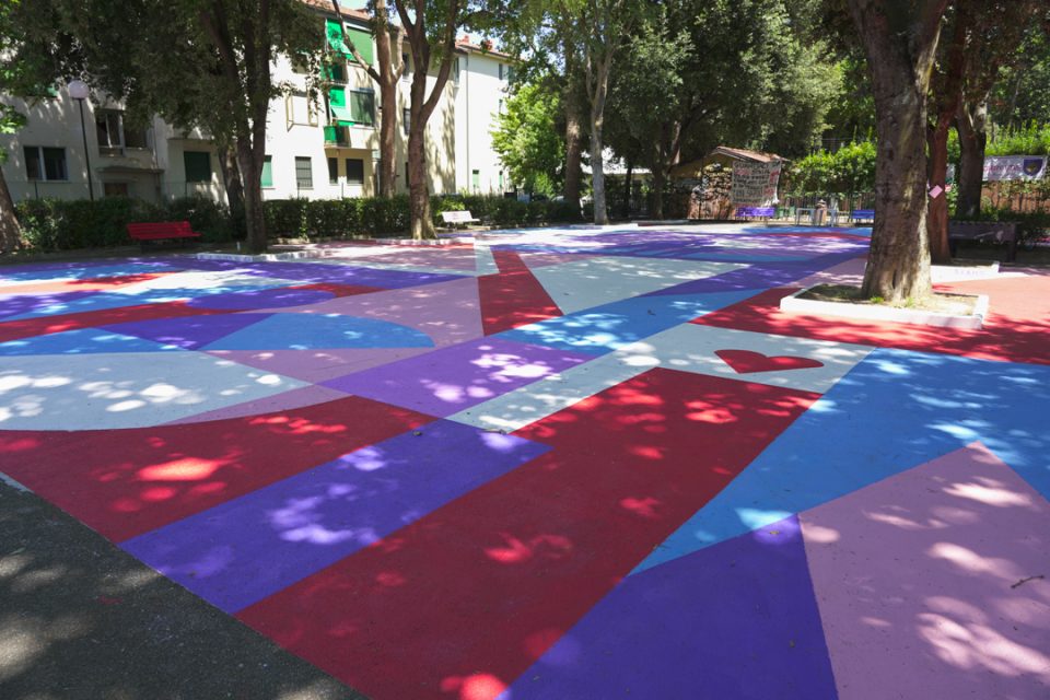 L’arte urbana continua ad invadere la città e l’8 luglio 2020 è stata inaugurata la prima opera in Italia di design art su pavimentazione in uno spazio pubblico. Esattamente nel giardino del Quartiere 4 in via Torcicoda a Firenze, quadrilatero verde dell’Isolotto.