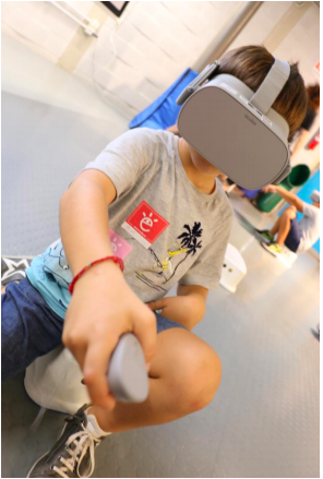 I bambini indossano il visore, la maggior parte di loro sperimentandolo per la prima volta, e giocano ad un video game immersivo. Già questo approccio abbatte con entusiasmo le barriere di un argomento ostico e abbraccia la didattica. Inoltre la lezione, formata da una parte teorica insieme al gioco che dura circa 20 minuti si può inserire facilmente all’interno della tipica lezione frontale in presenza.