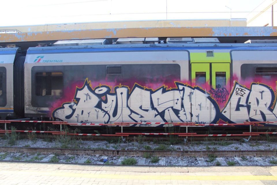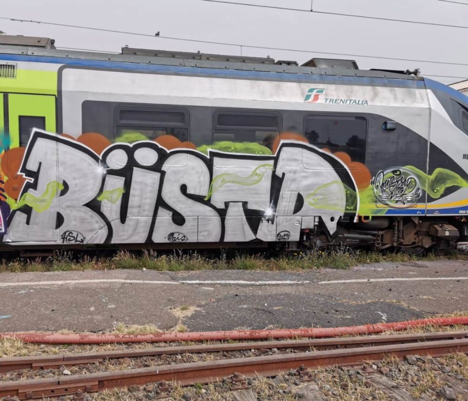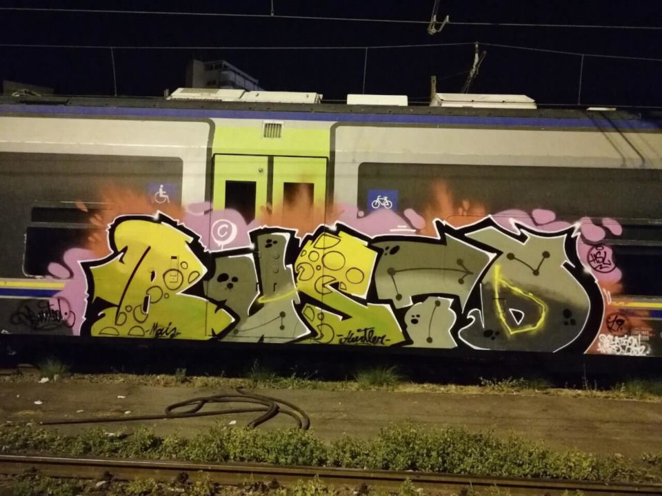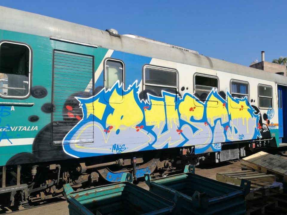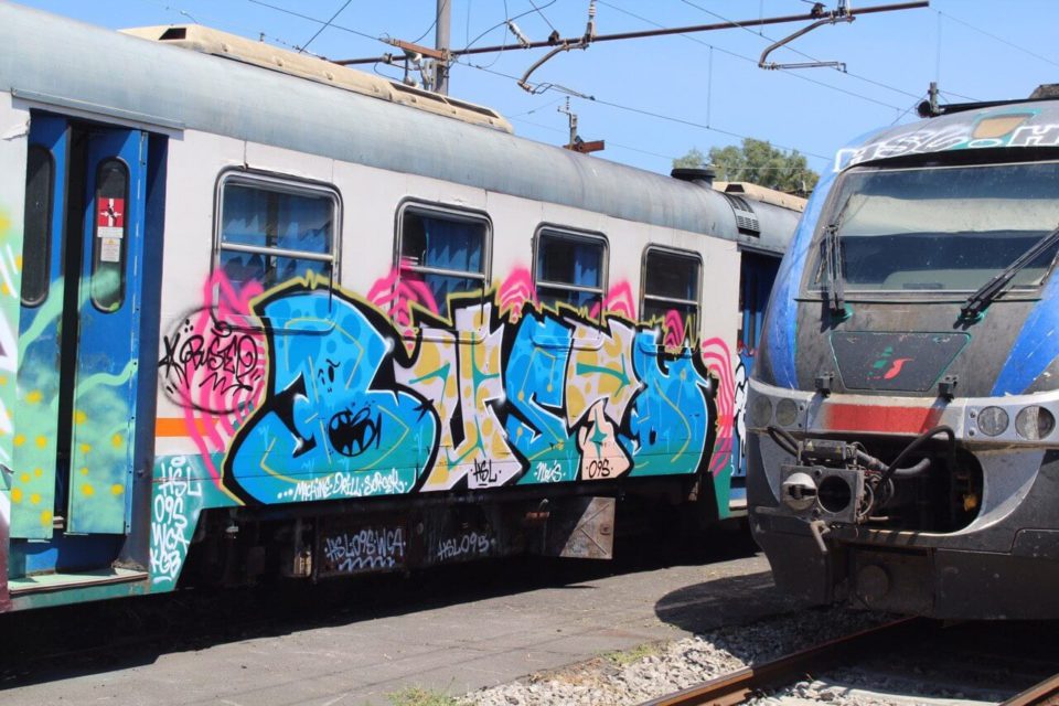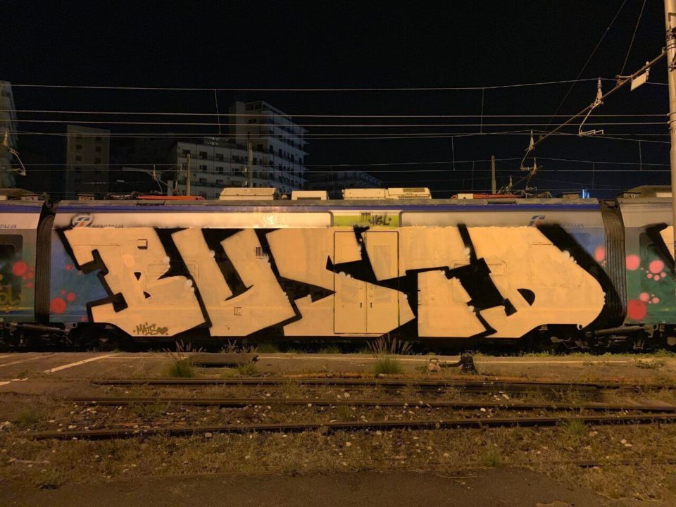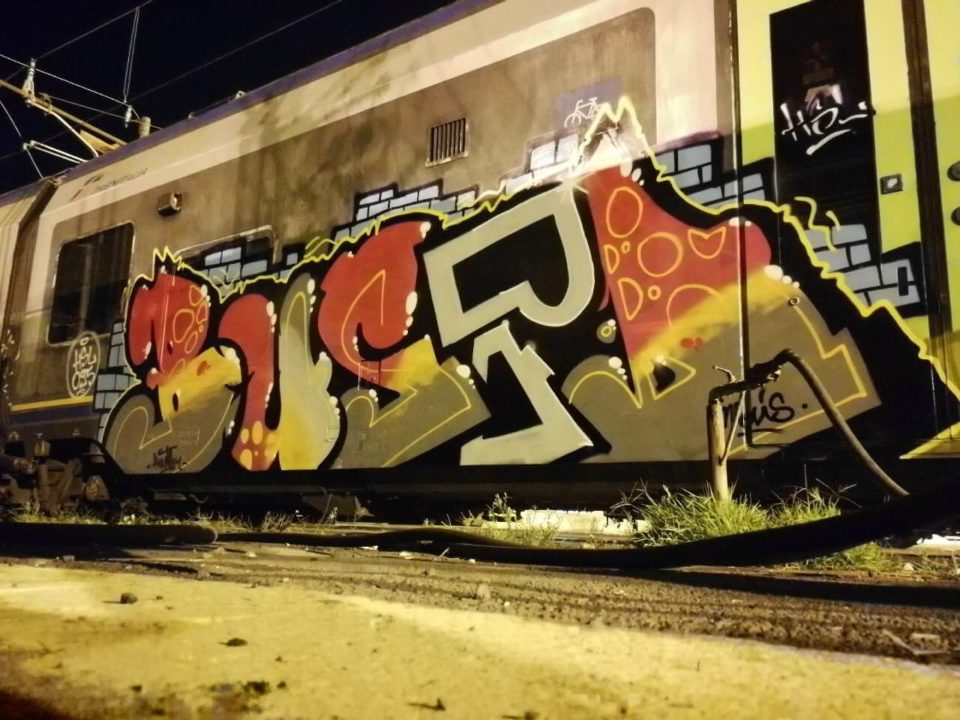 Ricordo che avevo appena finito di riempire e mentre ero abbassato vidi che una macchina era entrata nel deposito. Mi misi subito sotto al treno e presi i colori, e ad un certo punto sentii delle voci… sbirri. Passarono pochi secondi ed il mio sguardo si incrociò con quello di uno di loro, che gridò.