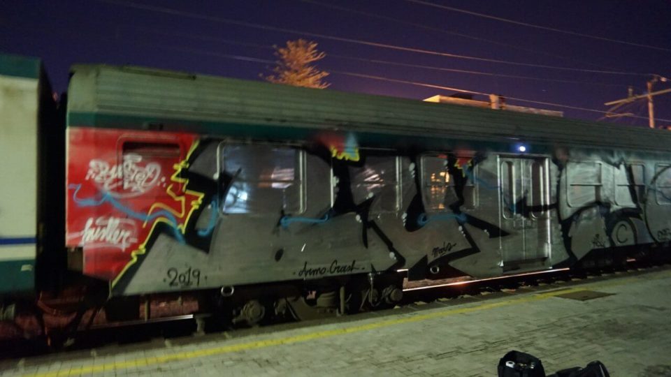 I remember that I had just finished filling and as I was lowered, I saw that a car had entered in the train yard. I immediately got under the train and I took the colors, and at a certain point I heard voices… cops. A few seconds passed and my eyes met those of one of them, who shouted.