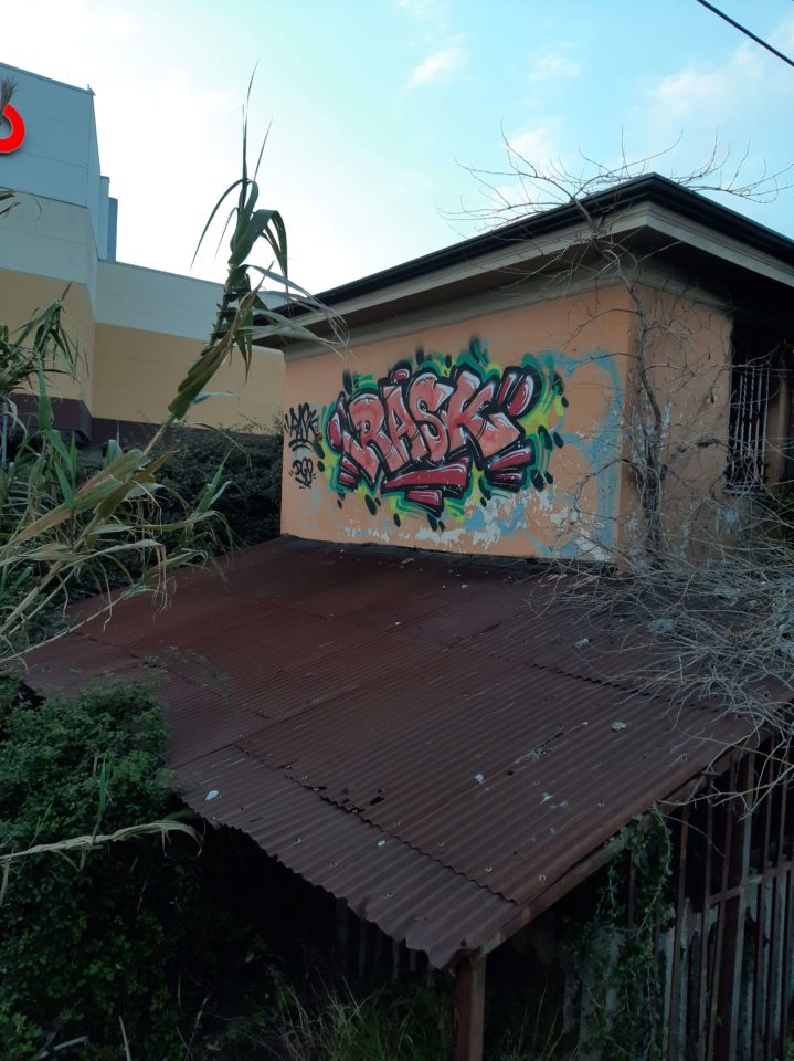 Irreverente e intrépido, estaba yo realizando un “street” en pleno día a las afueras de la ciudad. Trazo. Relleno, termino el out justo cuando un carro frena e inicia a acercarse en retro de manera amenazadora. El sheriff de turno, paladín de la justicia. Yo y mi socio nos dividimos e iniciamos a escapar, cada uno por su lado. El Sheriff, después de una inversión en U a lo Zenigata (El detective en la serie anime Lupin), intentó seguirnos. Logramos escapar entre las matas de ensalada de los huertos de las casas vecinas; para encontrarnos a las pocas horas en el área de higiene de un supermercado. “