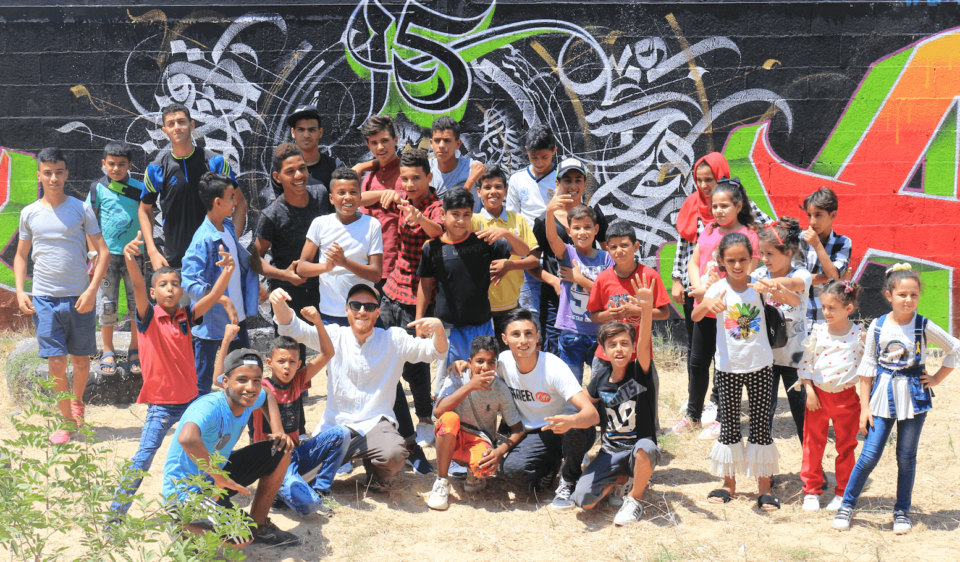 Nello specifico mi sono occupato dei workshop su graffiti e lettering con circa 30/40 bambini/e e ragazzi/e gazawi per quindici giorni affiancato da un team di psicologi.