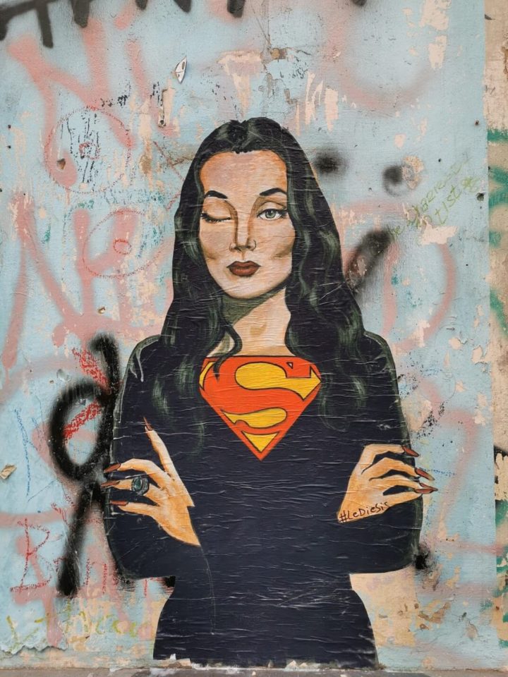 LeDiesis, collettivo di street artist, utilizzando la tecnica del paste up, dispensano occhiolini attraverso delle “Superwoman”, donne iconiche di arte e cultura, che hanno lasciato il segno.