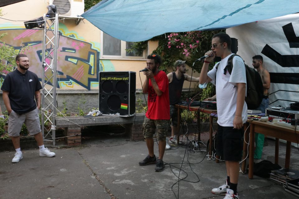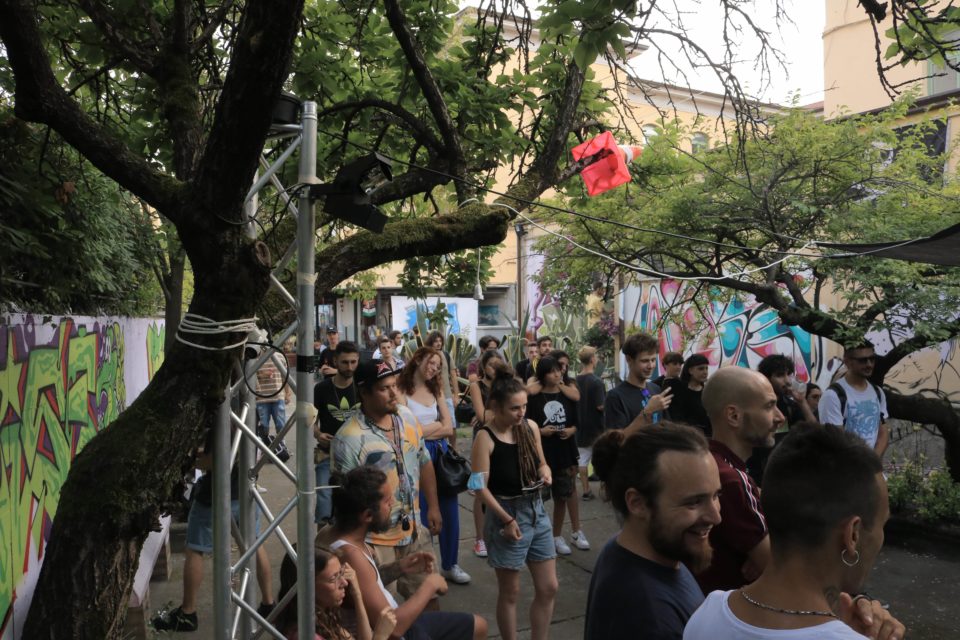 Sul “palco” si sono alternati diversi rapper che si sono sfidati in freestyle o hanno cantato i loro pezzi di repertorio; contemporaneamente, i dj hanno accompagnato le liriche dei rapper e hanno offerto un ottimo sottofondo sonoro a base di mix e scratch per tutti i presenti.