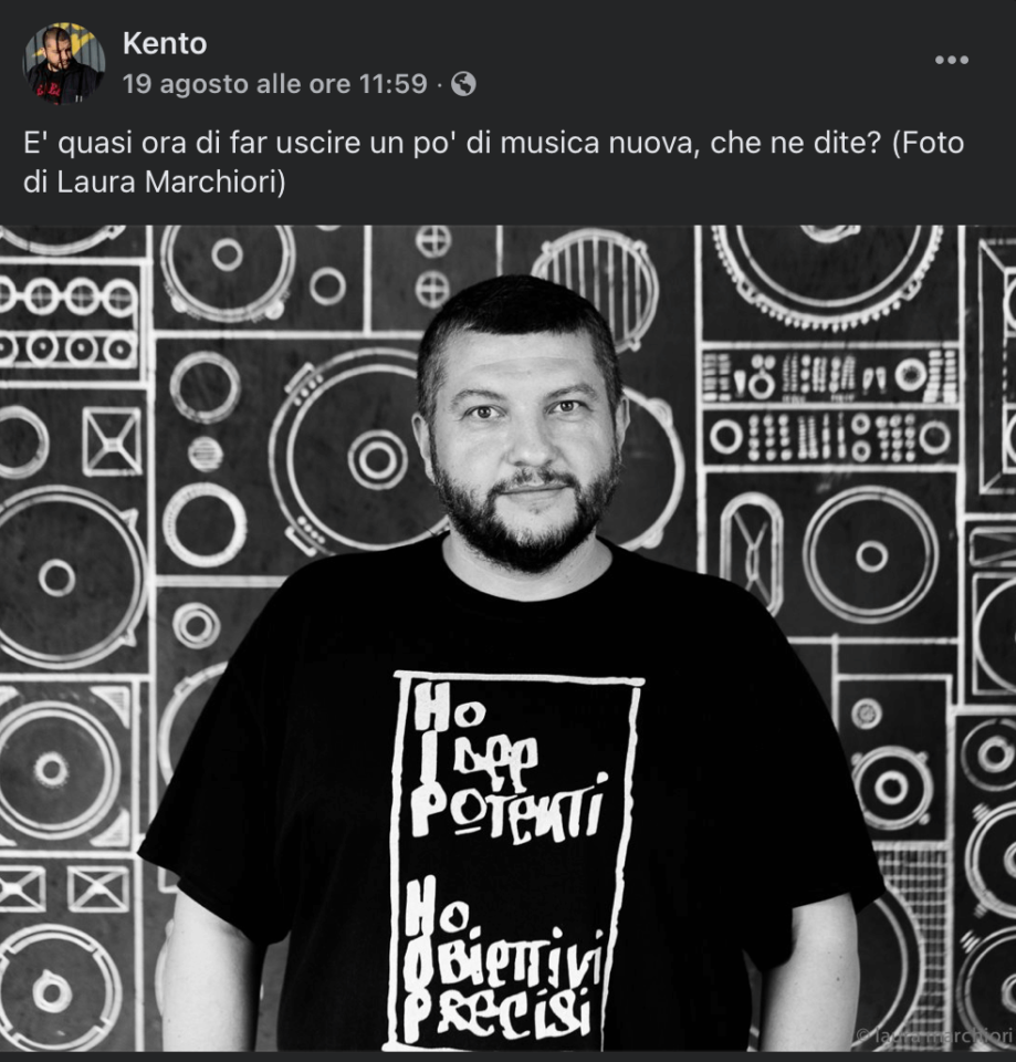 Pomeriggio d’estate, 30 gradi fuori, 35 in casa. Sudo in salotto in attesa di tornare a sudare in ufficio. Viola mi chiama: “Papà, mi aiuti con inglese?” Lo faccio volentieri, anche perché non ha assolutamente bisogno di farsi aiutare e fa tutto da sé; ma ha 12 anni e ogni momento che vuole condividere con me o con sua mamma è prezioso. Lei inizia, io apro Facebook sul telefono e trovo un post di Kento che annuncia nuova musica.
