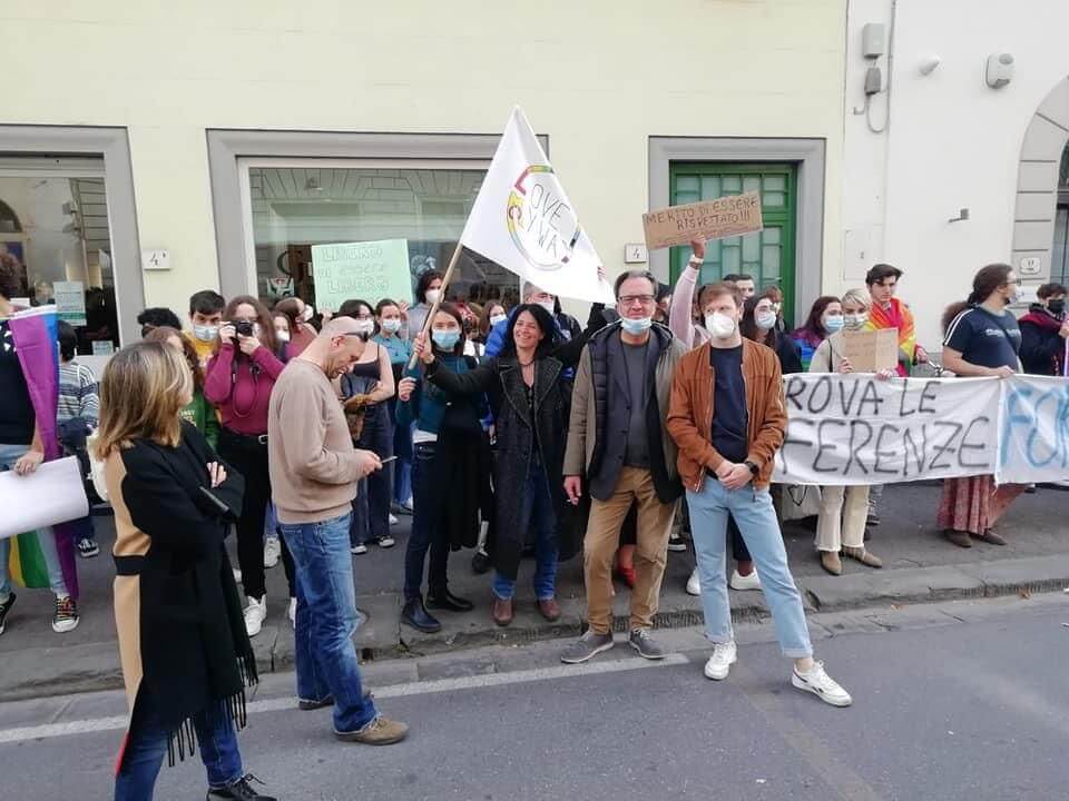 Abbiamo perciò organizzato questo sit-in pacifico, questo lo sottolineo, sotto la sede di Italia Viva. L’abbiamo organizzato come Love My Way, ben sapendo quante poche potevano essere le adesioni. La partecipazione infatti è stata perlopiù di collettivi. Questo dà la misura di cosa sia l’associazionismo a Firenze e non solo.