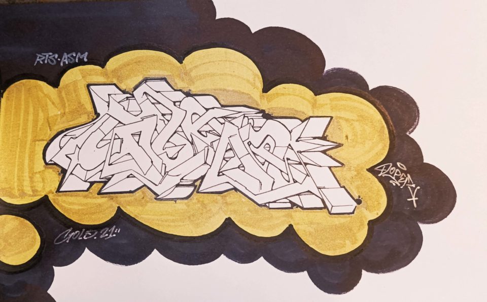 Poi feci un viaggio a Milano con mia madre, treni e sottopassaggi come gallerie d’arte urbana, vera, dura, ancora scioccante. Alle superiori iniziai a sperimentare, scrivere OVUNQUE, disegnare su carta. Un compagno più grande negli interminabili ritorni in bus mi faceva il doposcuola di Hip Hop, ringrazio sempre DJ TheDose(!) nonostante tutto mi ha appioppato un nome e buttato nel business.