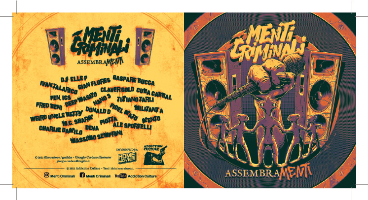 Per il precedente album “Presenze dall’oltrespazio” avevamo ideato una limited del CD come fosse una vecchia VHS… il CD era contenuto in una custodia di una videocassetta con tanto di copertina del disco realizzata come fosse una locandina di un B-Movie. Le grafiche di “AssembraMenti”, invece, le abbiamo affidate a Giorgio Credaro, un bravissimo illustratore.