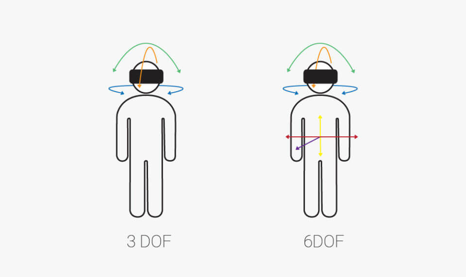 Il suo acronimo sta per Degree Of Freedom (gradi di libertà) e si riferisce al movimento e orientamento del corpo e della testa su 6 assi nel momento in cui interagiamo con la Realtà Virtuale: 3 assi direzionali e 3 di rotazione.