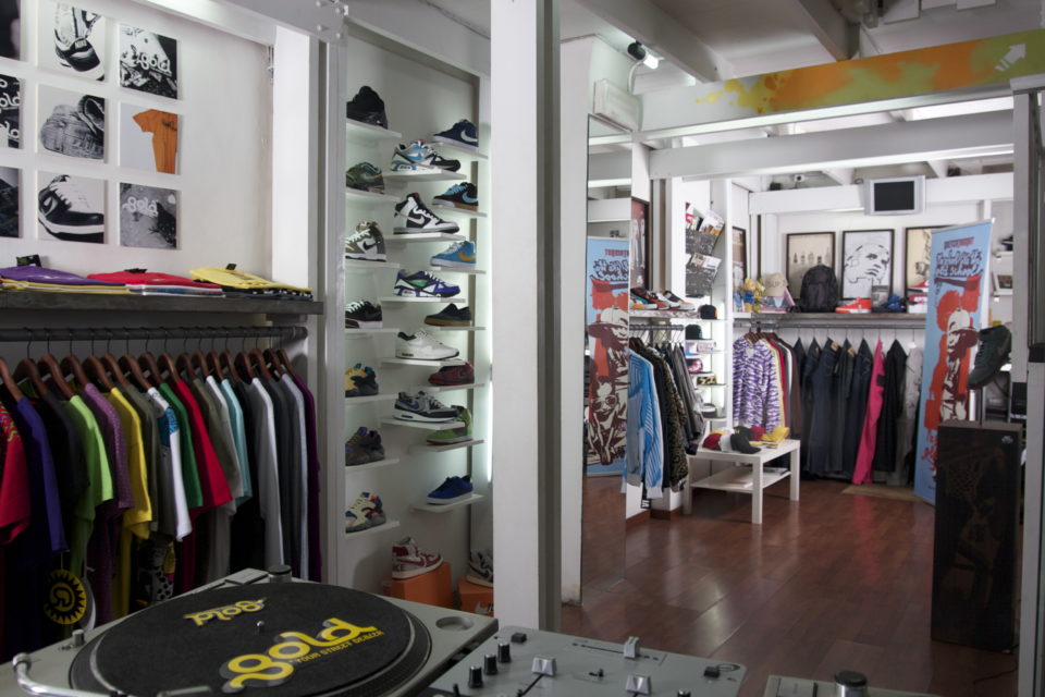Il primo negozio aperto in Via Verdi nel 2003 porta a Firenze un po’ di quella brezza che soffia oltreoceano e le t-shirt brandizzate Gold sono il primo esempio di streetwear in città, spesso realizzate coinvolgendo artisti della street culture, iniziando dal noto writer Paolo Capezzuoli, aka Zero T, che nel 2004 firma la prima t-shirt appositamente ideata da un artista per Gold. Alle t-shirt seguono numerosi altri prodotti, come felpe, accessori, jeans, camicie e maglieria.