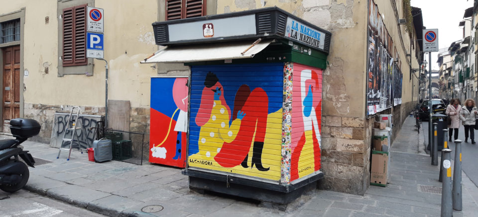 La prima esperienza con un supporto più grande di una tela l’ho avuta alcuni anni fa. Ho dipinto i bandoni dell’edicola all’incrocio tra Borgo la Croce e Sant’Ambrogio a Firenze.