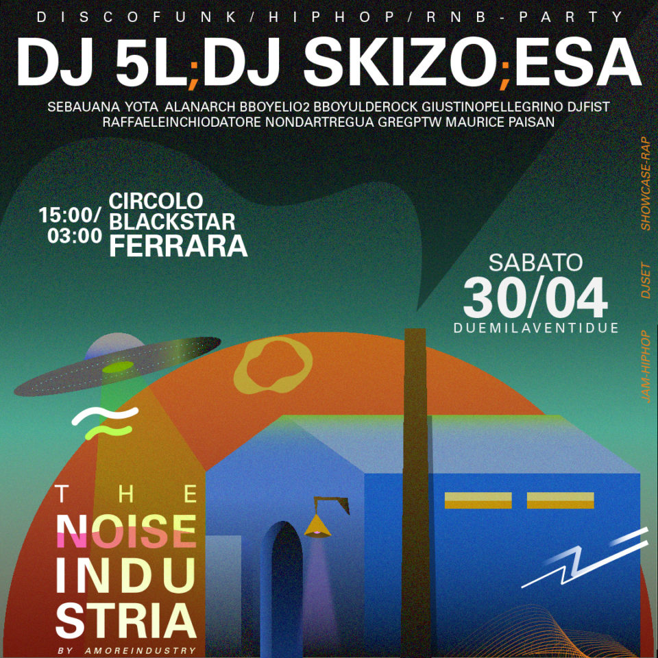 Sabato 30 aprile, al Circolo BlackStar di Ferrara, andrà in scena il secondo appuntamento di The Noise Industria, il format ideato dal collettivo Amore Industry per rivitalizzare l’ambiente culturale vicino alla cultura Hip Hop, rivalorizzandone le fondamenta e le dinamiche sociali, di festa e condivisione.