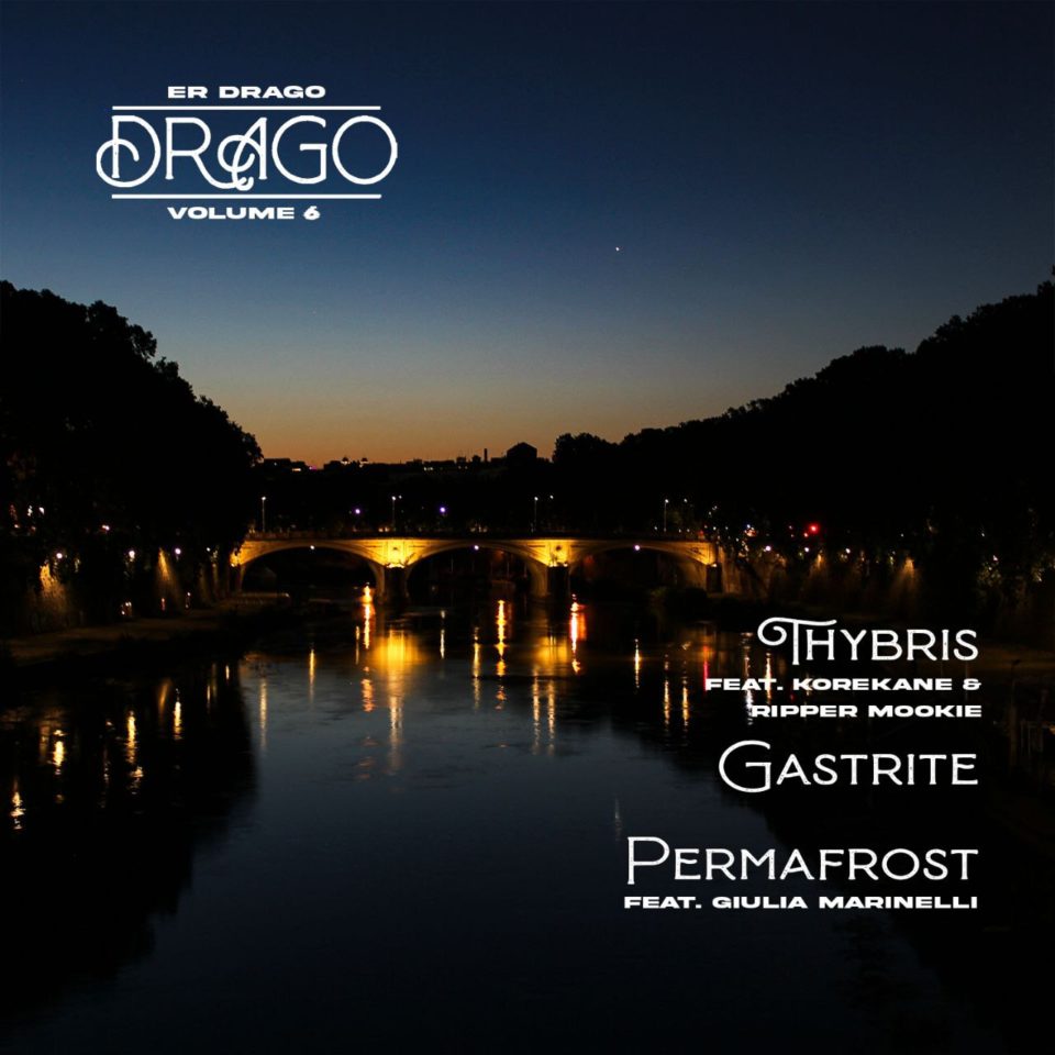 Superare una prova di questo tipo, tre brani al mese completamente diversi in mood e concept per sei mesi consecutivi, ha portato l’artista a radicare e certificare la sua spinta creativa e il suo carisma. Questa saga funge da biglietto da visita per chiunque voglia comprendere il potere trasformativo dell’arte quando lo stesso artista è canale di realtà esterne completamente diverse tra loro. La base dell’opera di Er Drago e della sua forma stilistica è la libertà di concedersi completamente alla musica e così all’ispirazione poetica dei piani immaginali. Che passano dalla sfera dei sotterranei a quella dei piani astrali senza perdere l’autenticità dell’esperienza d’anima intrisa in ogni barra. E così anche il sesto volume ricalca la fase di meditazione profonda ed espansione di tutti i volumi prodotti e analizzati seguendo la scia del fiume che scava con Tybris, quella di terra con Gastrite e quella astrale magica con Permafrost.