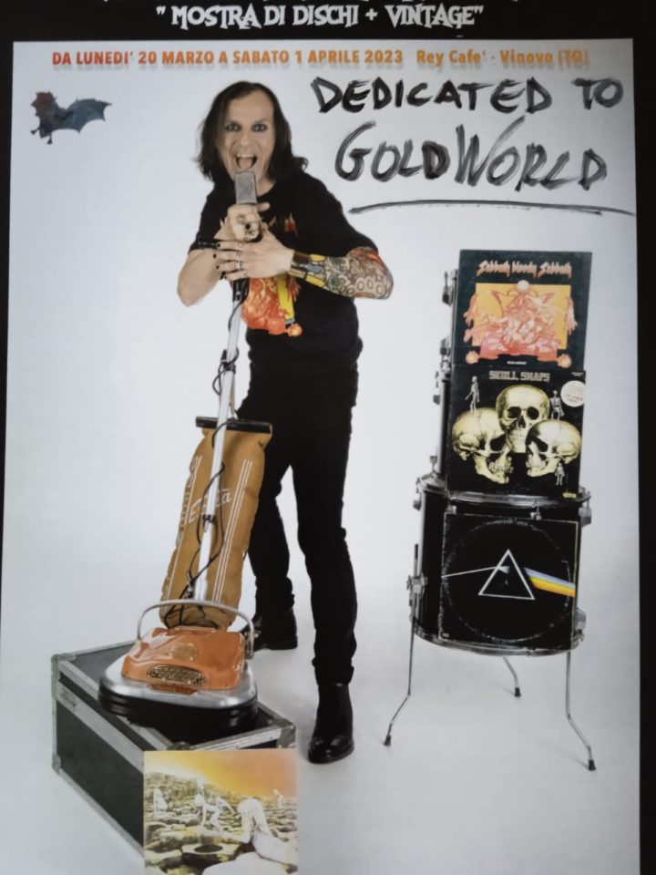 Non possiamo finire questa intervista senza un po’ di sano entertainment: ricordiamo così che la mostra con ingresso free sarà aperta da Lunedi 20 marzo a Sabato 1 Aprile 2023 sempre presso il Rey Café a Vinovo, e che la cover esposta dei Grand Funk (color oro) la dedichiamo a GoldWorld.