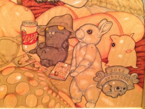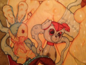 Due aggettivi sono essenziali per definire il lavoro di John John Jesse: PUNK e ROCK. Newyorkese autentico (proviene direttamente dal Lower East Side per intendersi), emerge nella scena artistica contemporanea grazie alla realizzazione di poster per band alternative come ad esempio quella di cui faceva parte (chiamata “Nausea”). Nei suoi quadri i soggetti principali sono avvenenti fanciulle che mostrano il proprio corpo senza pudore e con orgogliosa ostentazione, ma non solo, l’attenzione ai dettagli che animano tutte le composizioni é quasi maniacale e interessante da osservare grazie alla presenza di innumerevoli suggestioni visive provenienti non solo dall’universo musicale.