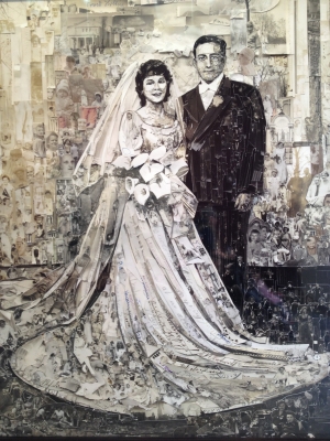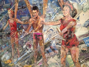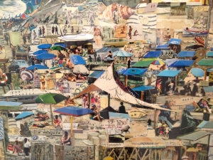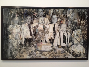 Album” è la mostra di Vik Muniz che si sta tenendo presso la galleria Sikkema Jenkins di New York. Questo artista dalle origini brasiliane, ha composto un corpus di opere in forma di collages, che rappresentano immagini tratte da cartoline e fotografie raccolte dall’artista per un certo numero di anni. Scene familiari e paesaggi di viaggi si mescolano in un insieme narrativo che ci trasporta nella dimensione dei vecchi album di famiglia e dei ricordi che ognuno di noi ha raccolto tramite le immagini del proprio passato. Dunque, attimi universali visti come al microscopio (i lavori sono tutti di grande formato), per consentire allo spettatore un nuovo sguardo su un mondo che si fa ricordare con nostalgia, quello andato.