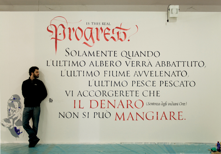 Vedevo però una certa chiusura da parte di questo ambiente verso il writing, quindi lo consideravo un po’ snob. Solo parecchi anni dopo ho deciso di dedicarmici completamente, ho sempre avuto questa idea fissa di far entrare il writing dalla porta principale; ultimamente son stato contattato dalla rivista americana Letter Arts Review, e (incredibile) erano proprio affascinati da questo mio connubio fra calligrafia e graffiti, e mi hanno chiesto un’intervista per loro. Queste cose portano onore al movimento del writing in generale, perchè in questo modo si eleva la visione che ne ha la gente comune.