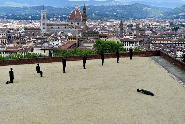 Tra le opere in mostra l’importante installazione Critical Mass, un ammasso confuso di corpi definito dall’artista stesso “anti-monumento che evoca tutte le vittime del XX secolo”. Inizialmente ideata per un vecchio deposito di tram a Vienna, ci suggerisce un punto di riflessione su un momento estremamente buio nella storia dell’umanità dominato da guerra e distruzione. Visibile sulla terrazza inferiore del Forte, Critical Mass, acquisisce un forte significato mettendosi quasi in contrapposizione con la città rinascimentale, culla di quell’Umanesimo che vedeva la centralità dell’uomo come forza attiva, positiva e trasformatrice. Idee evidentemente calpestate nella scultura-simbolo di Gormley.