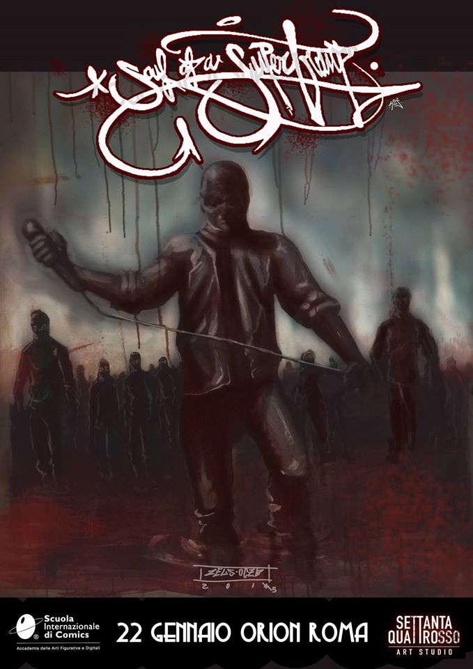Il 22 gennaio Mezzosangue sarà sul palco dell’Orion di Roma, mentre Zeus, insieme a Soi dello stesso crew, dipingeranno all’esterno, unendo in uno stesso momento le due arti.