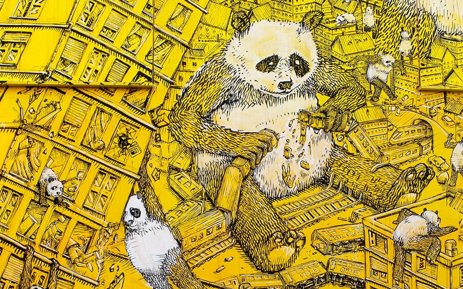 Blu realizza a Roma un muro-spirale dell’evoluzione